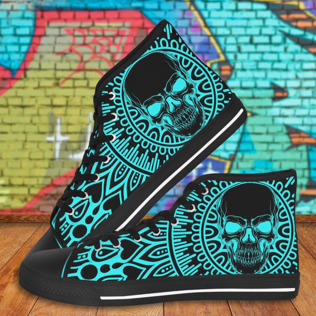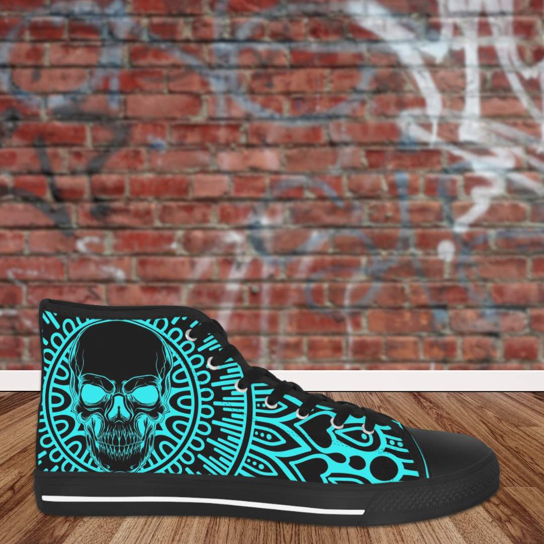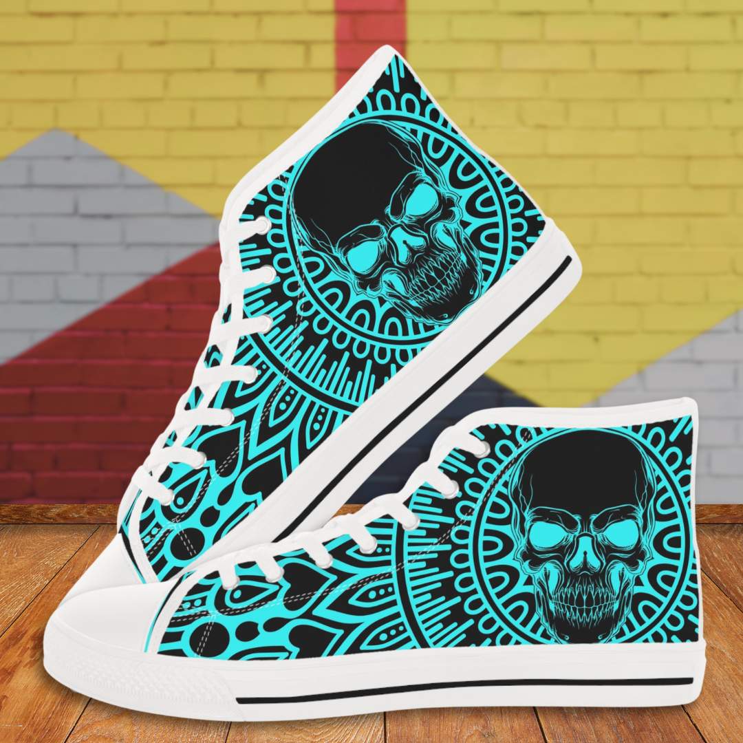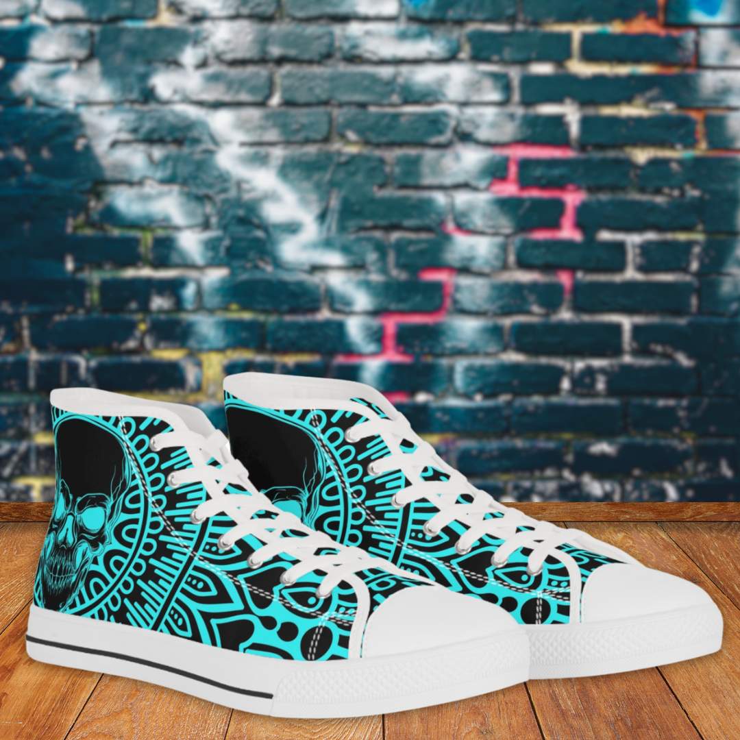 Made with breathable polyester canvas and featuring hi-poly deodorant memory foam insoles, these high top sneakers for men bear all the marks of an awesome shoe. Choose between black or white sole and laces, and enjoy the silver metal eyelets along with the lace-up closure. Add your designs and bring a bespoke staple to life.