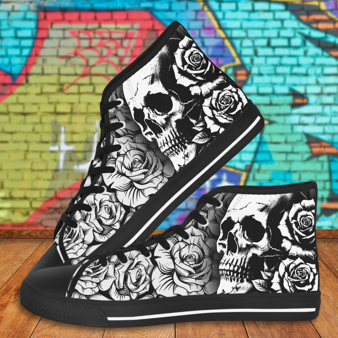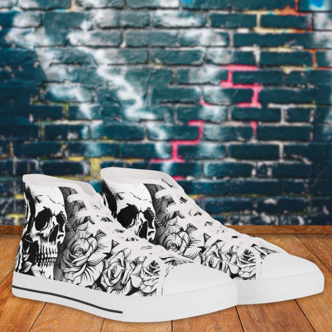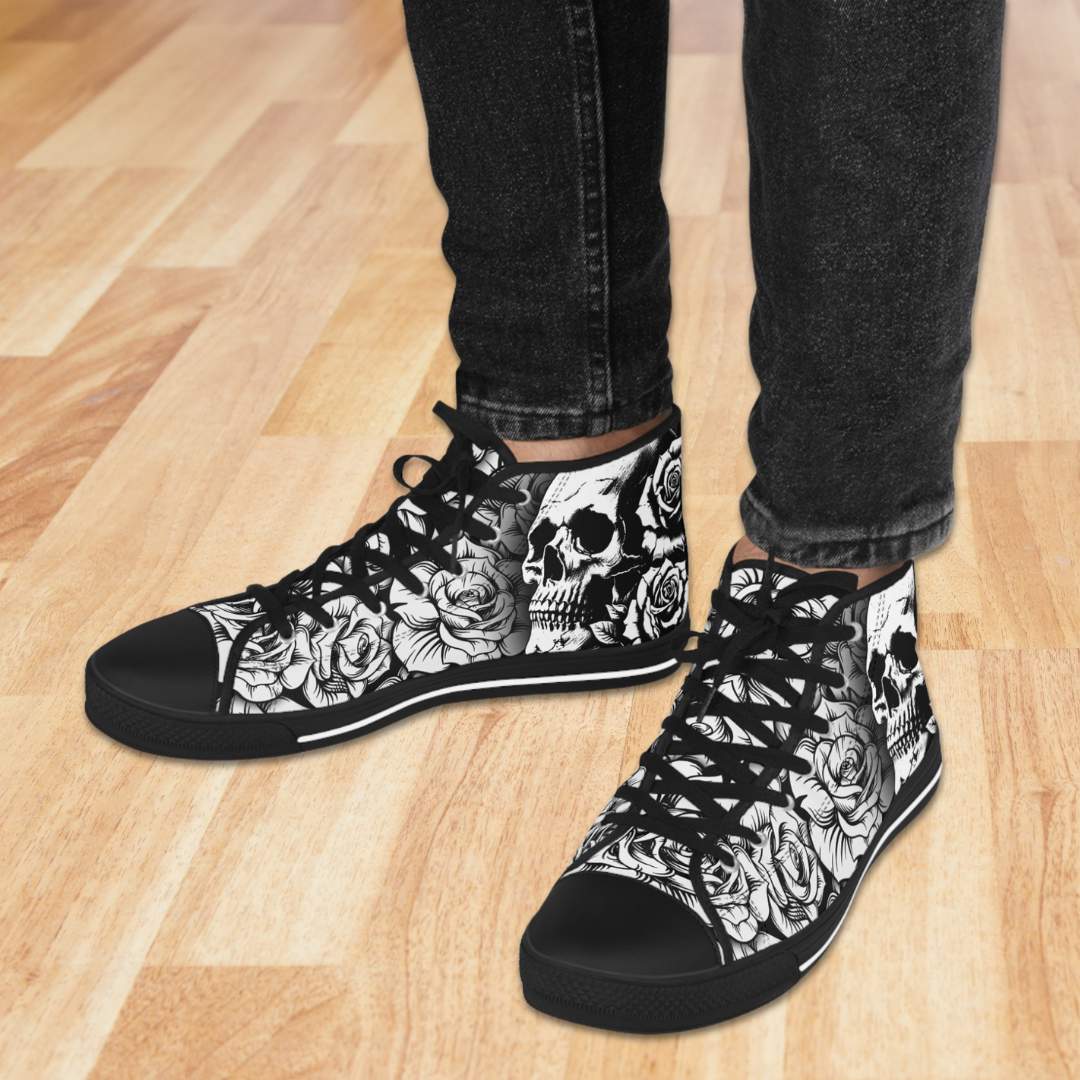 Made with breathable polyester canvas and featuring hi-poly deodorant memory foam insoles, these high top sneakers for men bear all the marks of an awesome shoe. Choose between black or white sole and laces, and enjoy the silver metal eyelets along with the lace-up closure. Add your designs and bring a bespoke staple to life.
