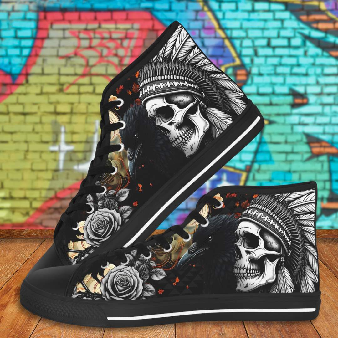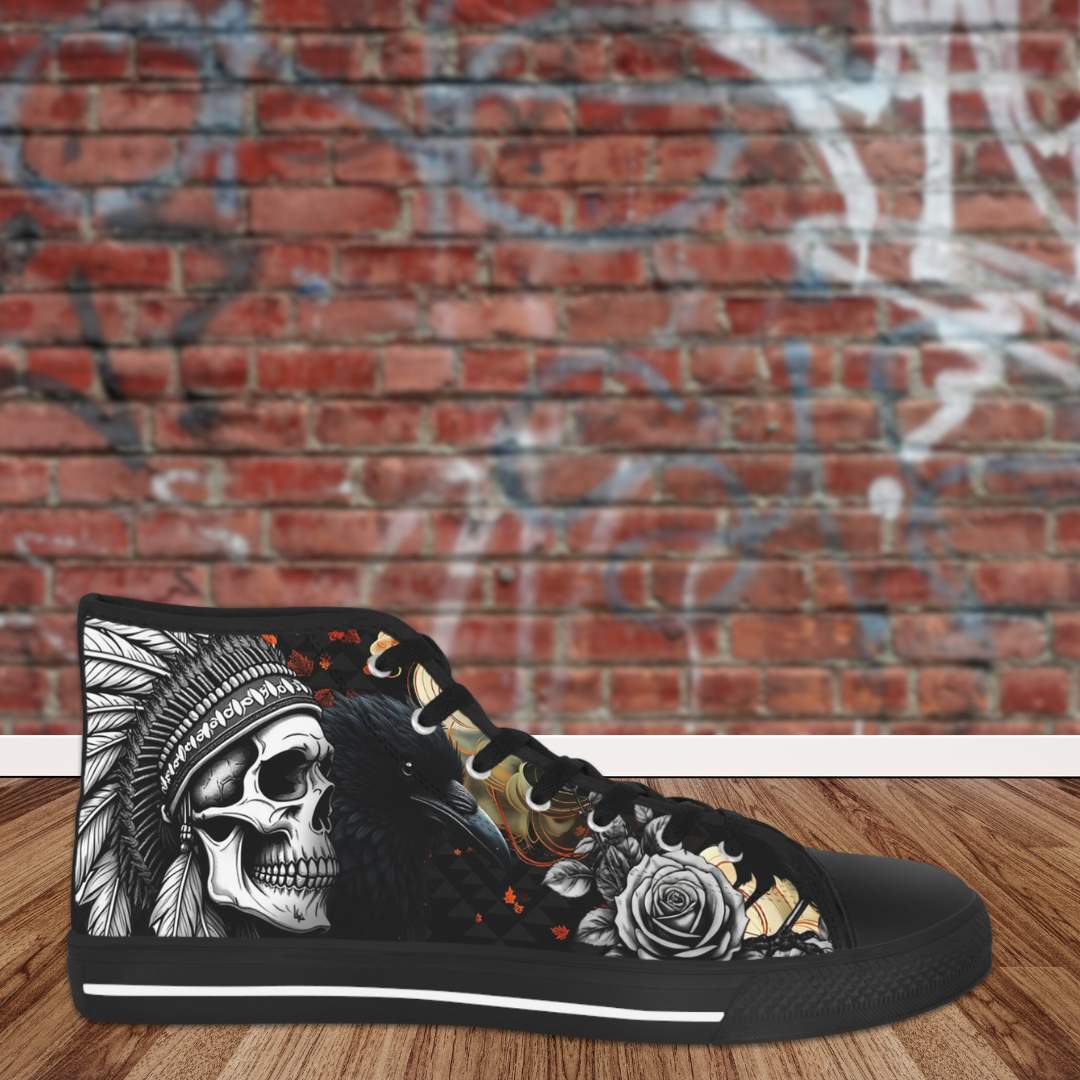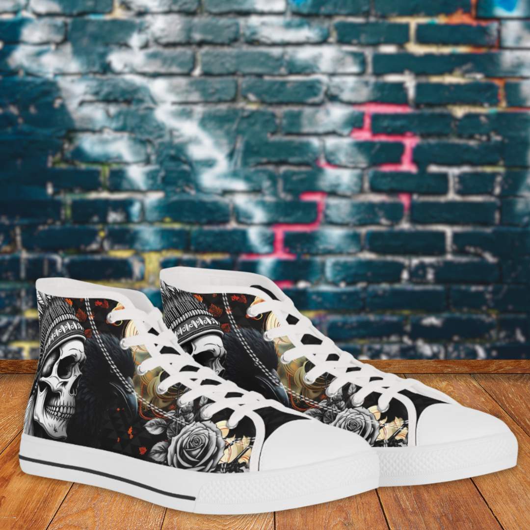 Made with breathable polyester canvas and featuring hi-poly deodorant memory foam insoles, these high top sneakers for men bear all the marks of an awesome shoe. Choose between black or white sole and laces, and enjoy the silver metal eyelets along with the lace-up closure. Add your designs and bring a bespoke staple to life.