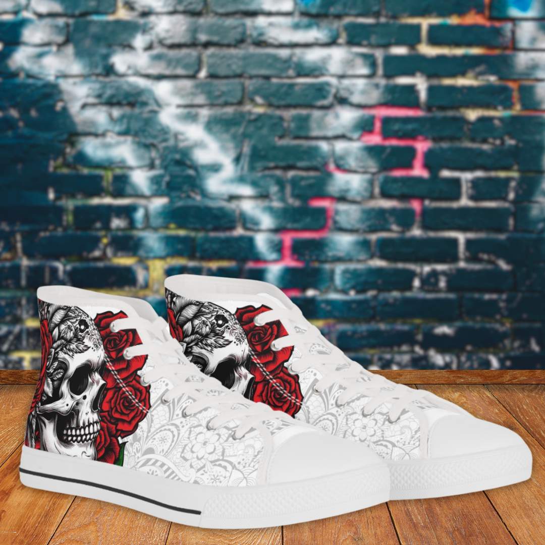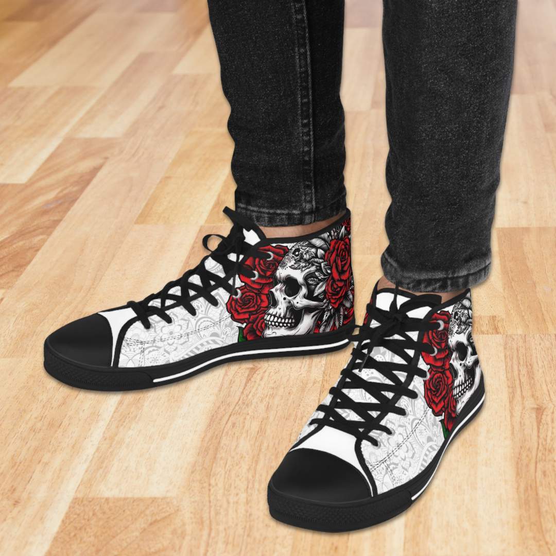 Made with breathable polyester canvas and featuring hi-poly deodorant memory foam insoles, these high top sneakers for men bear all the marks of an awesome shoe. Choose between black or white sole and laces, and enjoy the silver metal eyelets along with the lace-up closure. Add your designs and bring a bespoke staple to life.