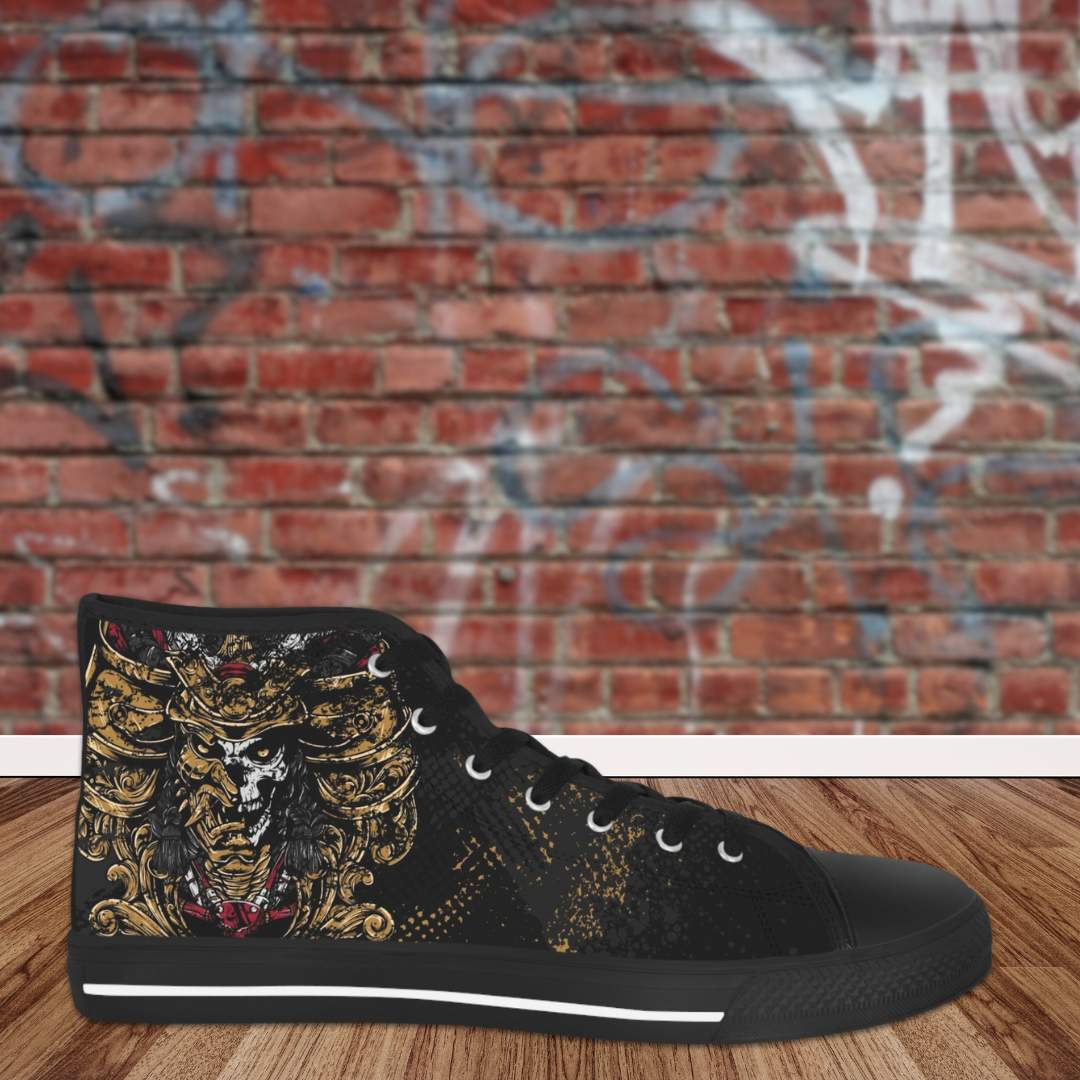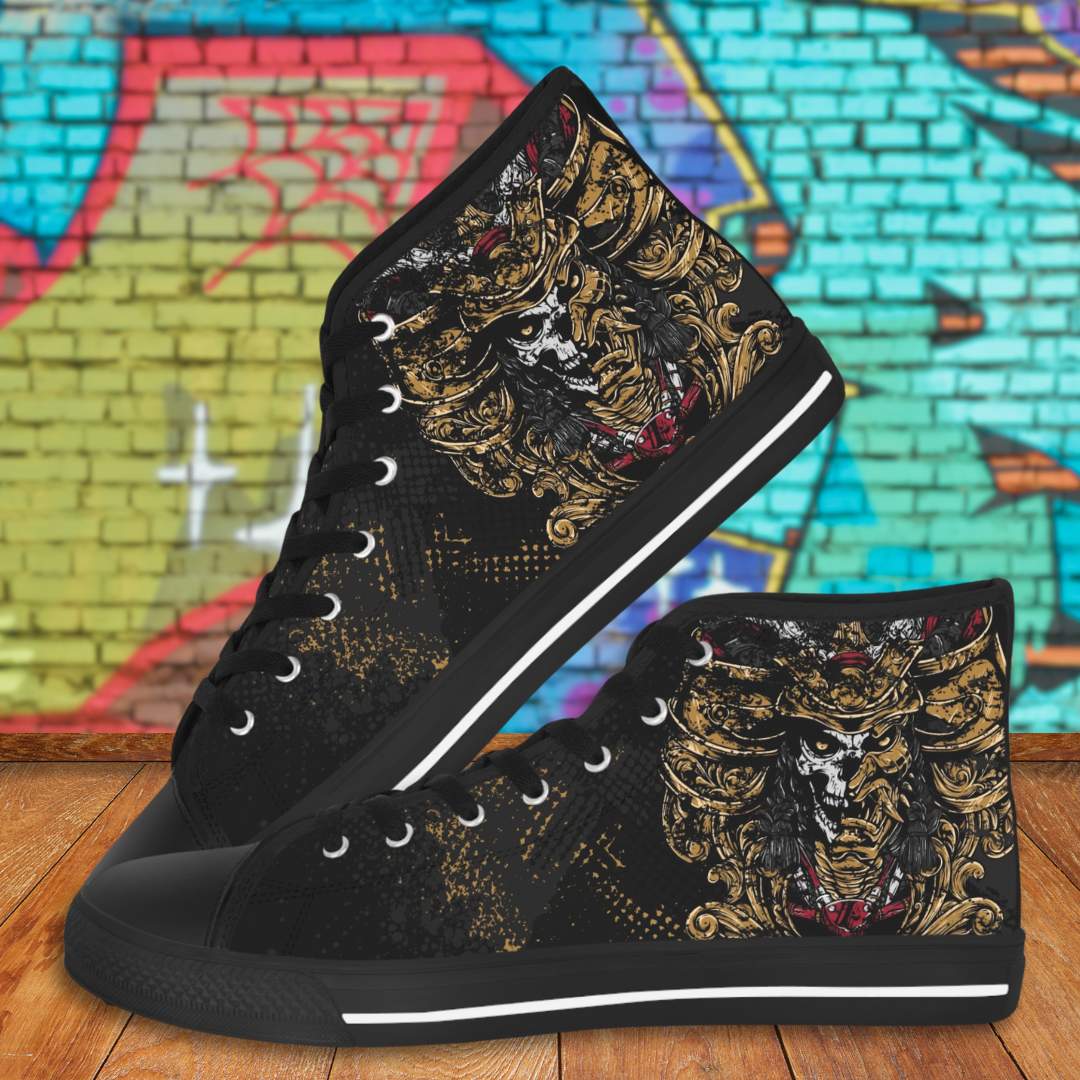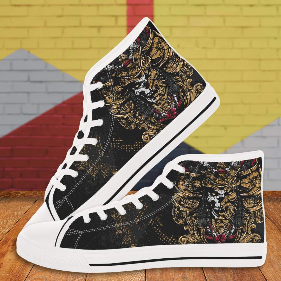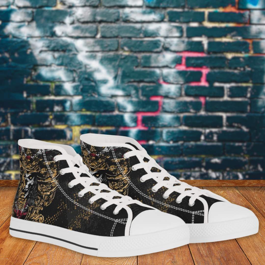 Made with breathable polyester canvas and featuring hi-poly deodorant memory foam insoles, these high top sneakers for men bear all the marks of an awesome shoe. Choose between black or white sole and laces, and enjoy the silver metal eyelets along with the lace-up closure. Add your designs and bring a bespoke staple to life.