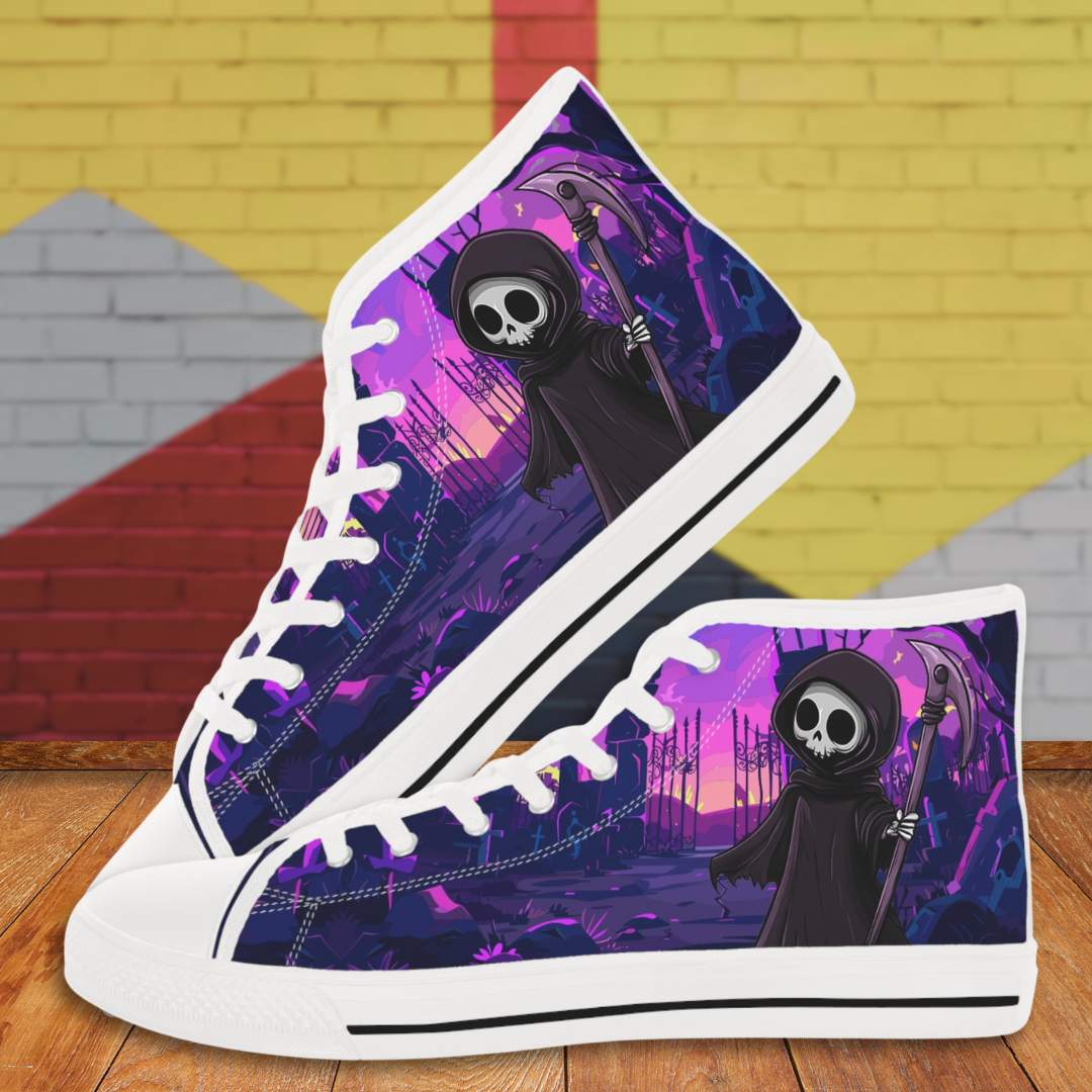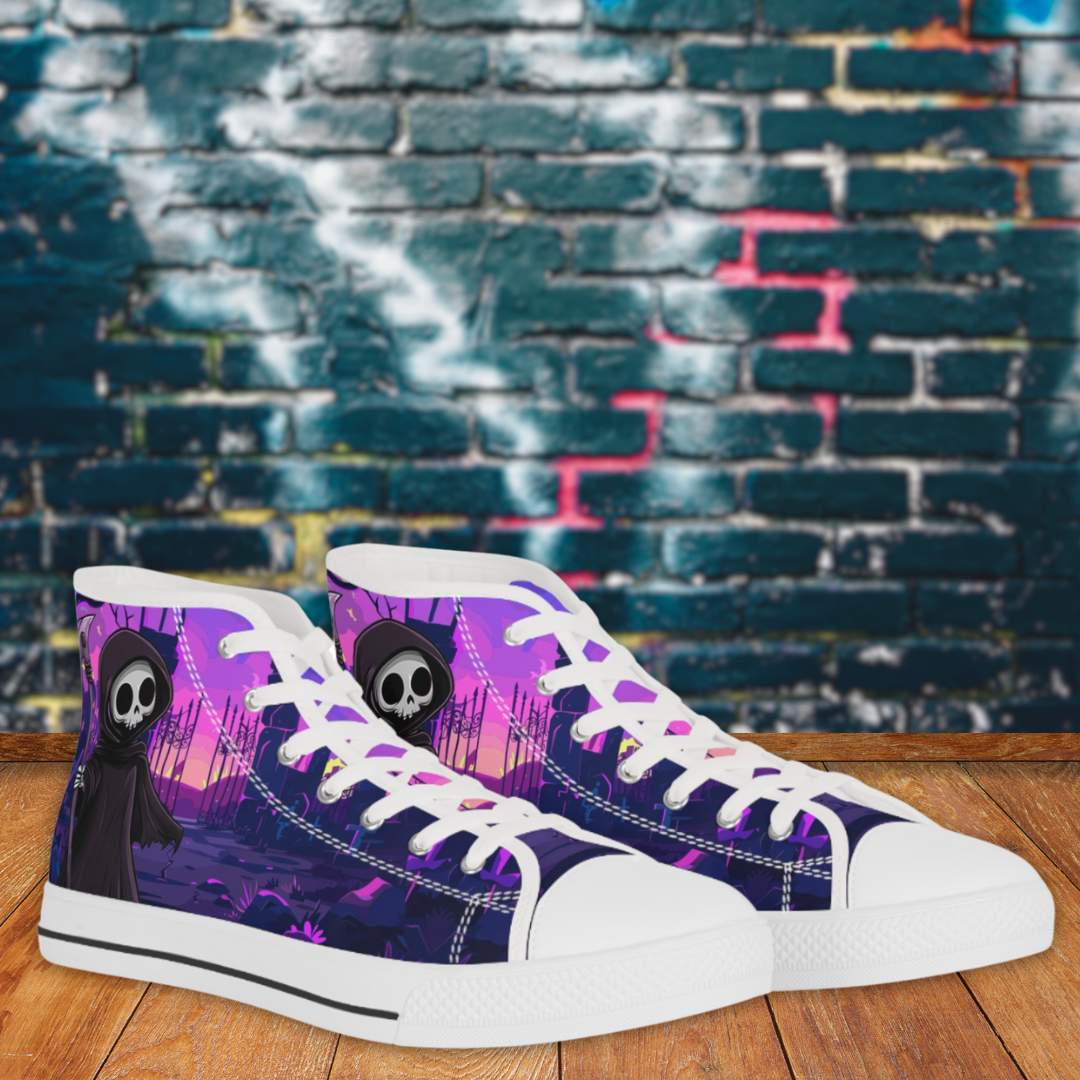 Made with breathable polyester canvas and featuring hi-poly deodorant memory foam insoles, these high top sneakers for men bear all the marks of an awesome shoe. Choose between black or white sole and laces, and enjoy the silver metal eyelets along with the lace-up closure. Add your designs and bring a bespoke staple to life.