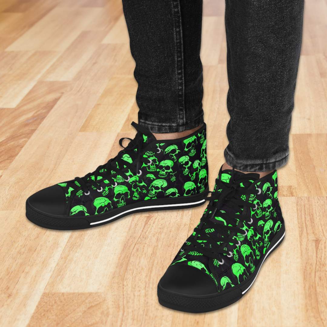Made with breathable polyester canvas and featuring hi-poly deodorant memory foam insoles, these high top sneakers for men bear all the marks of an awesome shoe. Choose between black or white sole and laces, and enjoy the silver metal eyelets along with the lace-up closure. Add your designs and bring a bespoke staple to life.