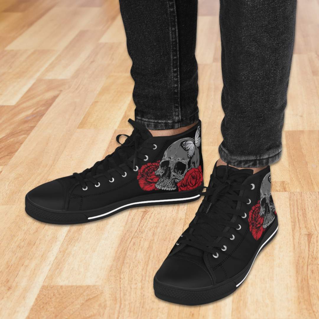 Made with breathable polyester canvas and featuring hi-poly deodorant memory foam insoles, these high top sneakers for men bear all the marks of an awesome shoe. Choose between black or white sole and laces, and enjoy the silver metal eyelets along with the lace-up closure. Add your designs and bring a bespoke staple to life.