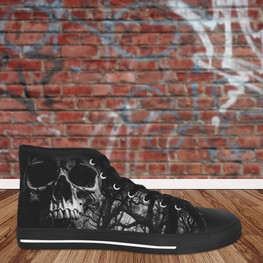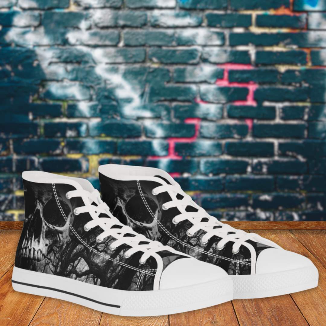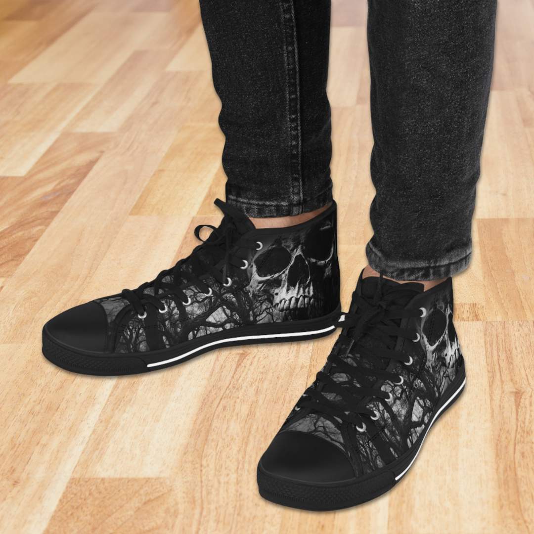 Made with breathable polyester canvas and featuring hi-poly deodorant memory foam insoles, these high top sneakers for men bear all the marks of an awesome shoe. Choose between black or white sole and laces, and enjoy the silver metal eyelets along with the lace-up closure. Add your designs and bring a bespoke staple to life.