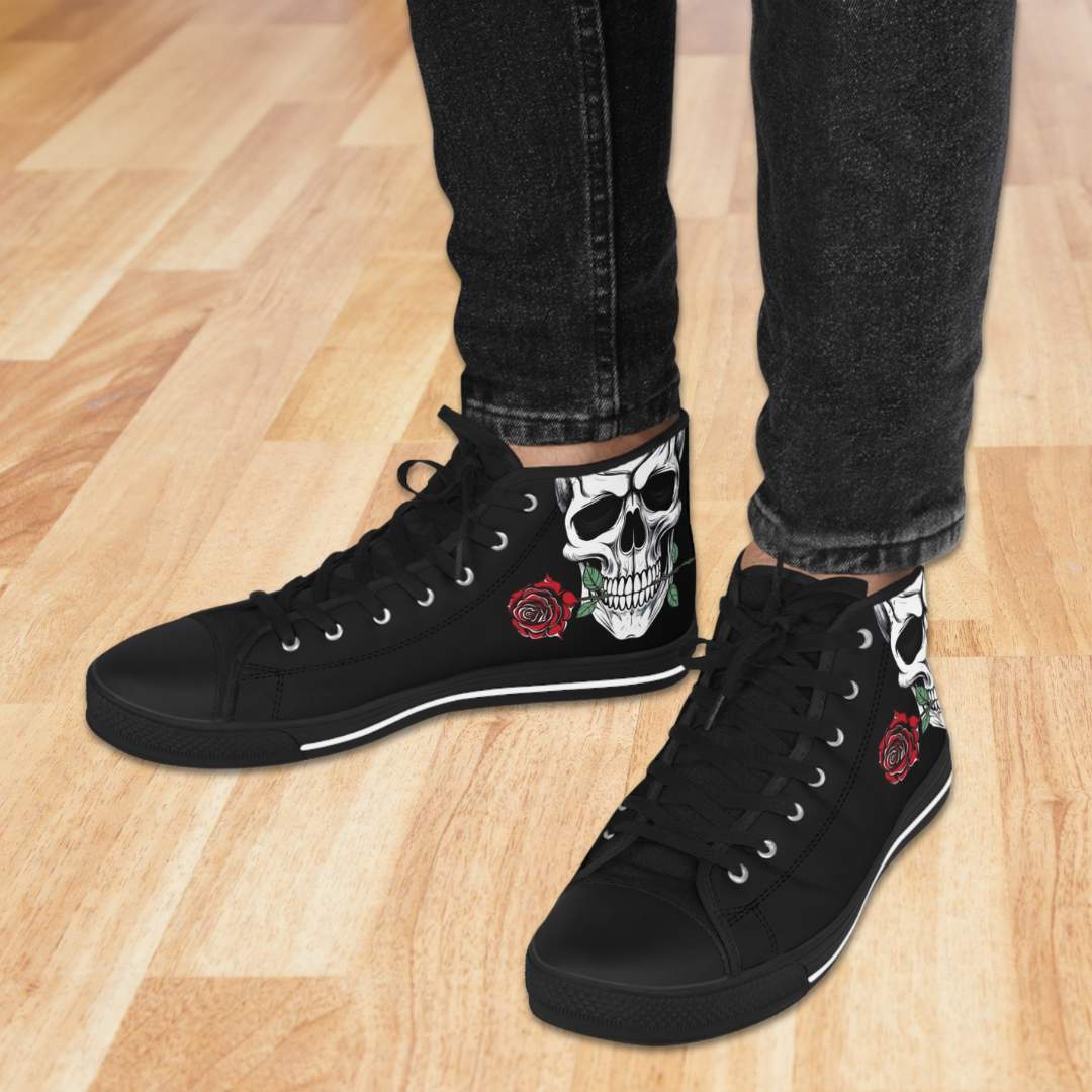 Made with breathable polyester canvas and featuring hi-poly deodorant memory foam insoles, these high top sneakers for men bear all the marks of an awesome shoe. Choose between black or white sole and laces, and enjoy the silver metal eyelets along with the lace-up closure. Add your designs and bring a bespoke staple to life.