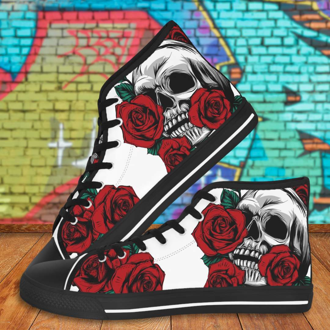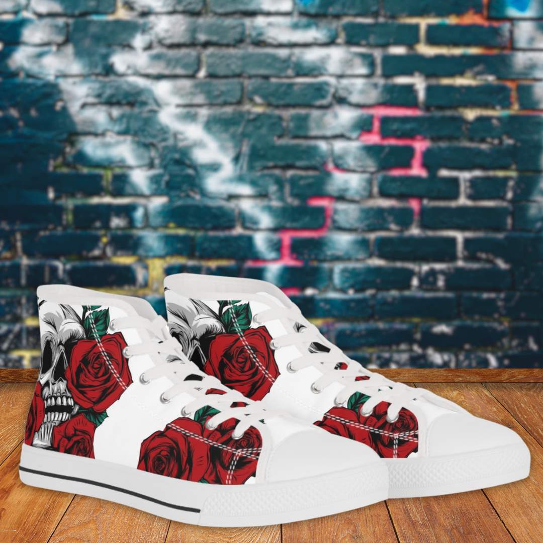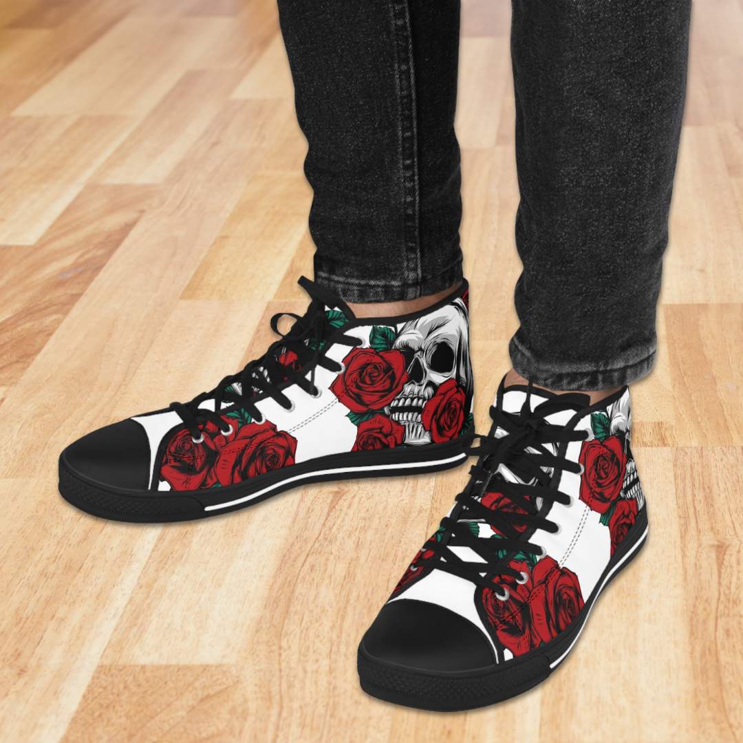 Made with breathable polyester canvas and featuring hi-poly deodorant memory foam insoles, these high top sneakers for men bear all the marks of an awesome shoe. Choose between black or white sole and laces, and enjoy the silver metal eyelets along with the lace-up closure. Add your designs and bring a bespoke staple to life.