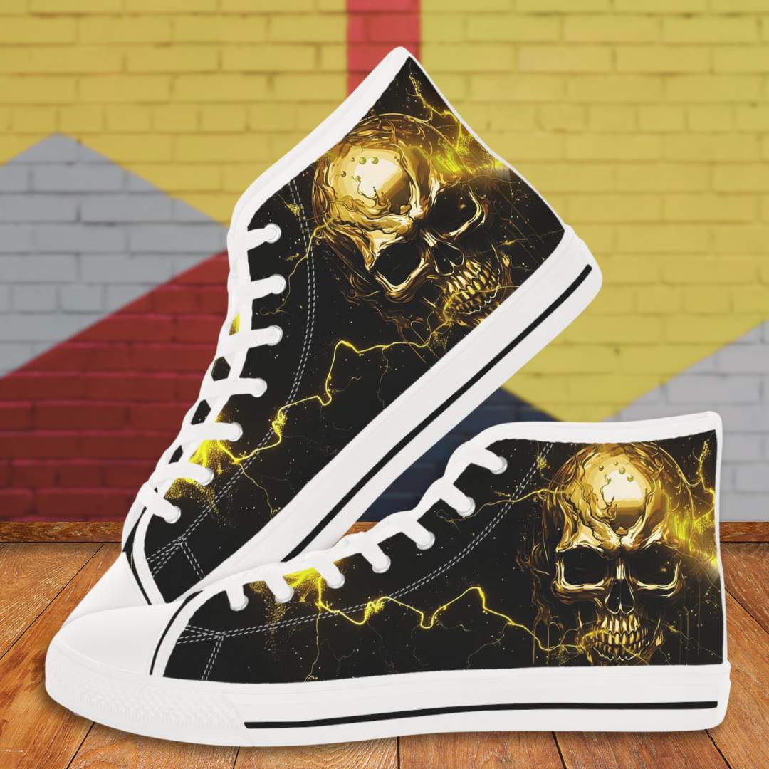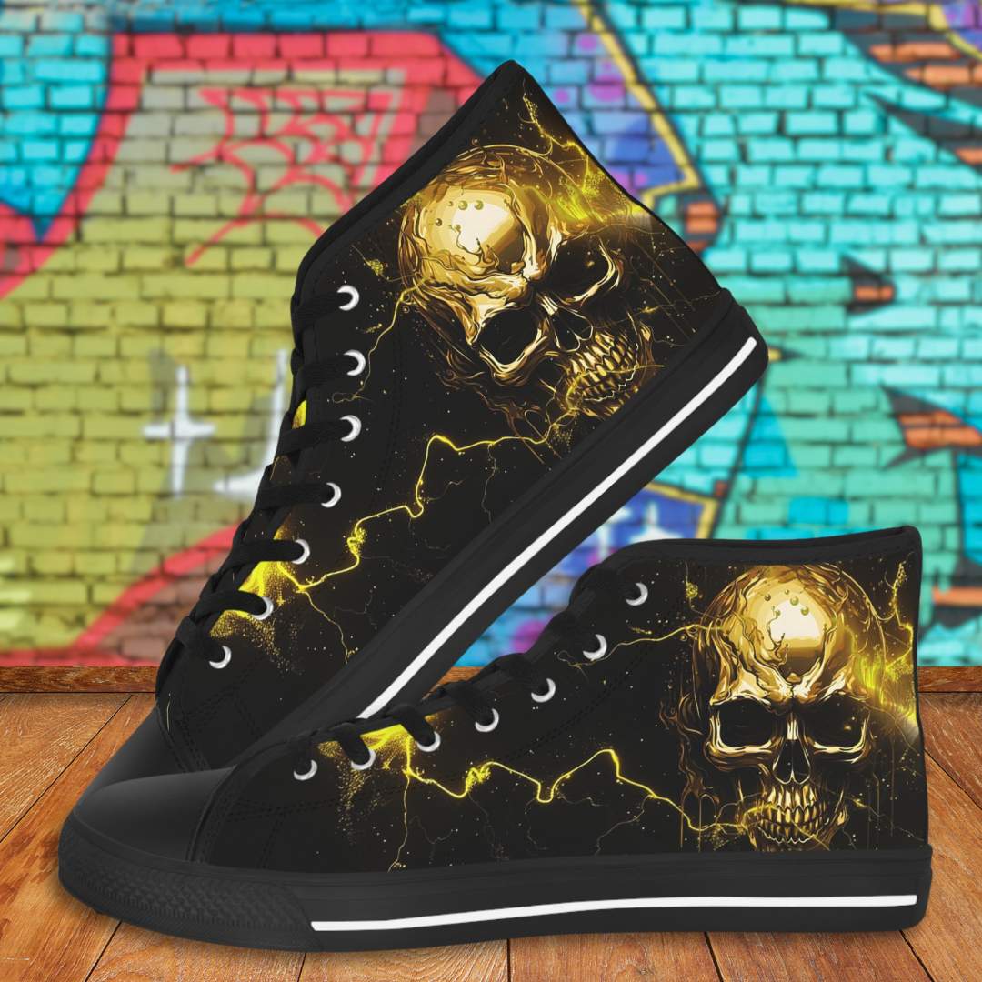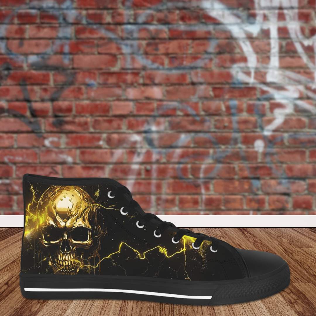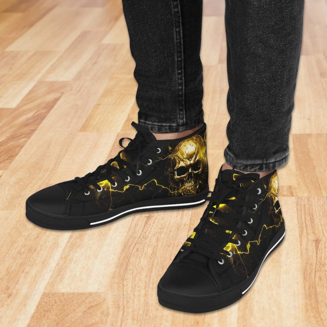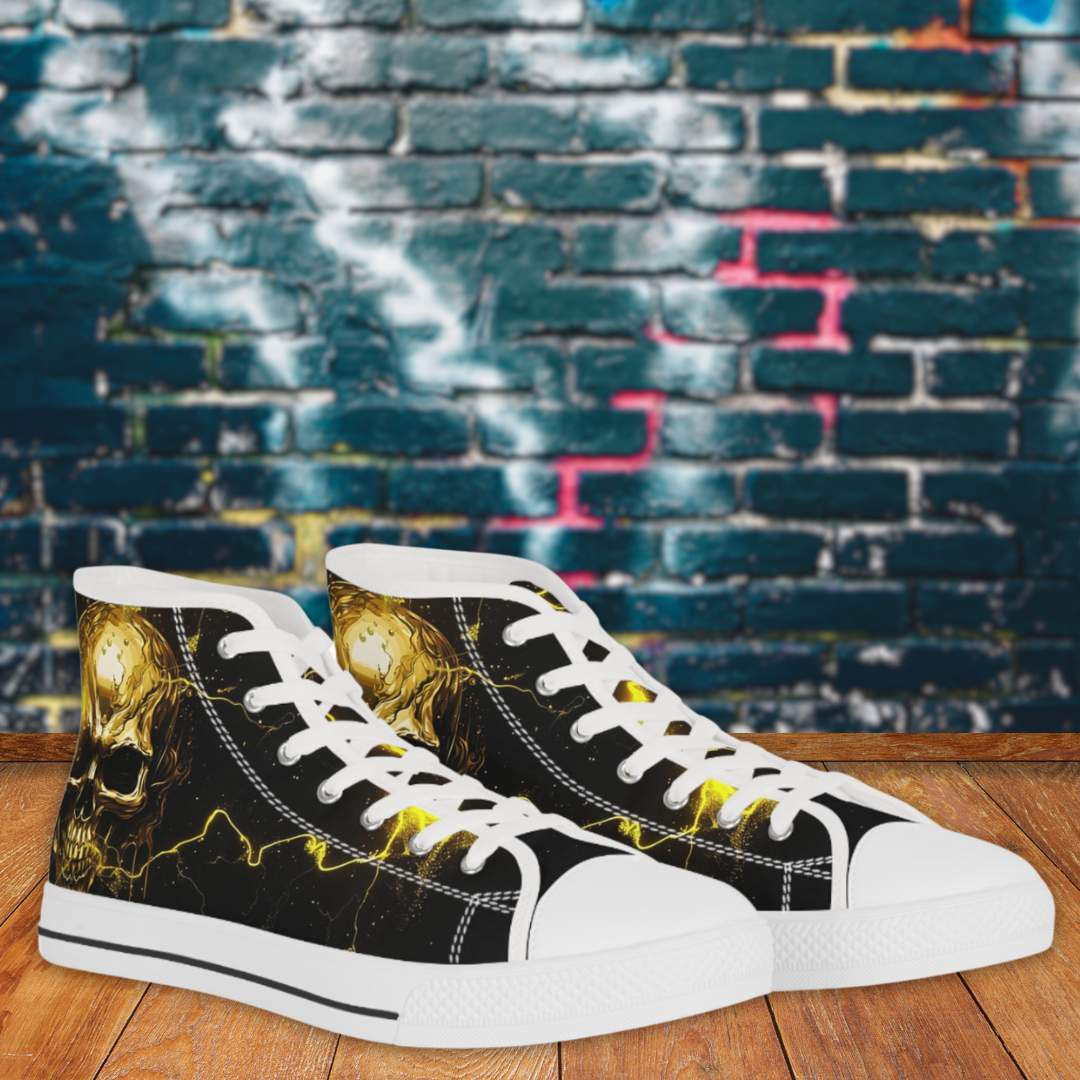 Made with breathable polyester canvas and featuring hi-poly deodorant memory foam insoles, these high top sneakers for men bear all the marks of an awesome shoe. Choose between black or white sole and laces, and enjoy the silver metal eyelets along with the lace-up closure. Add your designs and bring a bespoke staple to life.