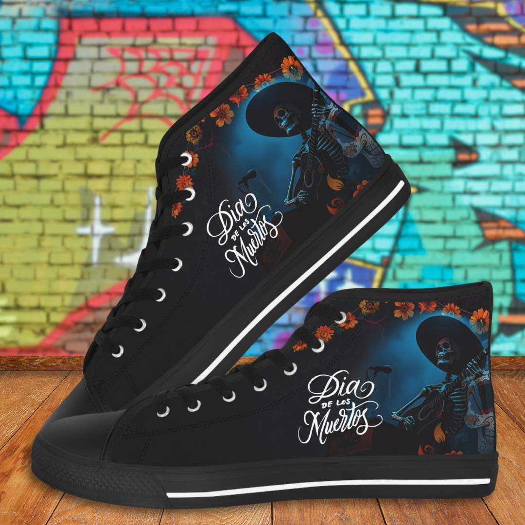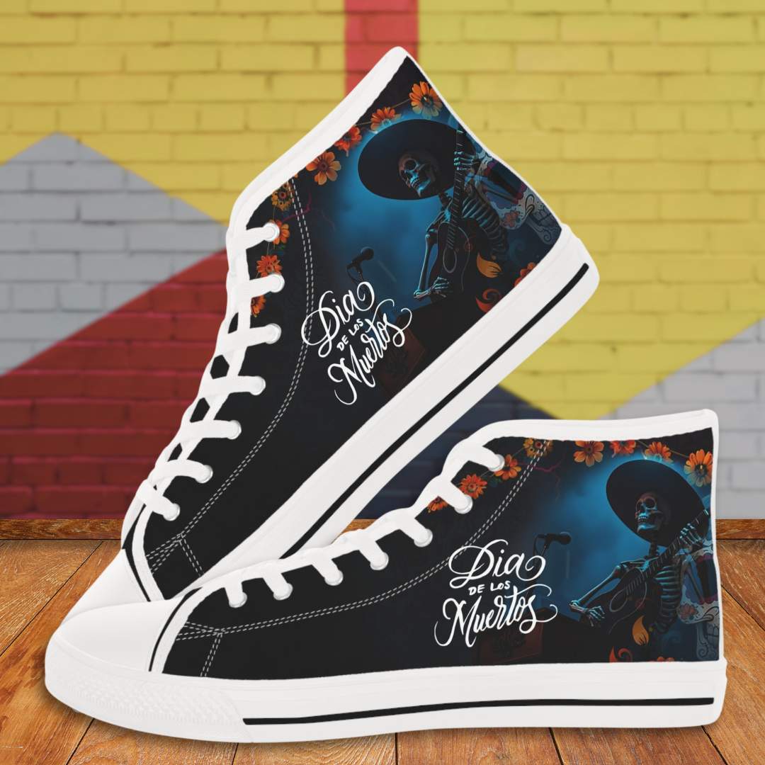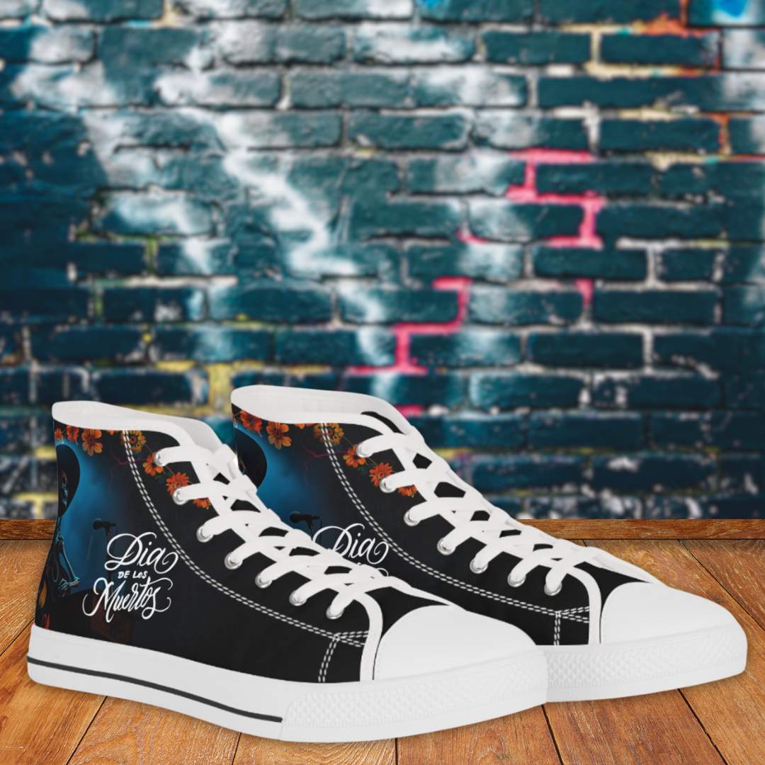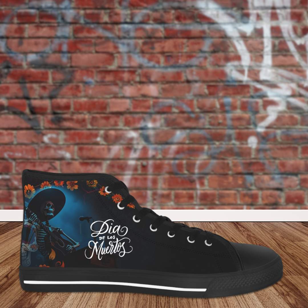 Made with breathable polyester canvas and featuring hi-poly deodorant memory foam insoles, these high top sneakers for men bear all the marks of an awesome shoe. Choose between black or white sole and laces, and enjoy the silver metal eyelets along with the lace-up closure. Add your designs and bring a bespoke staple to life.