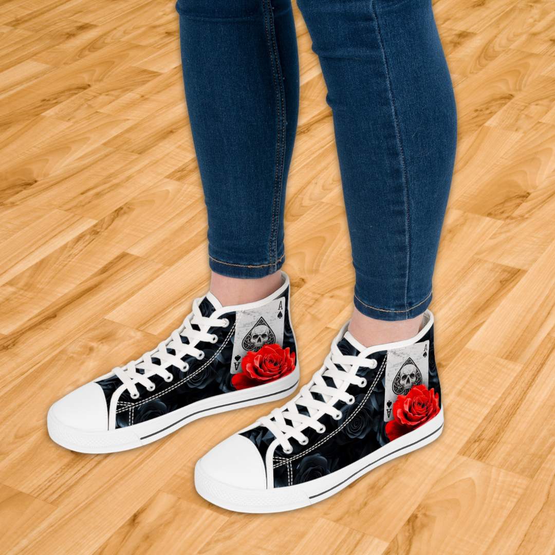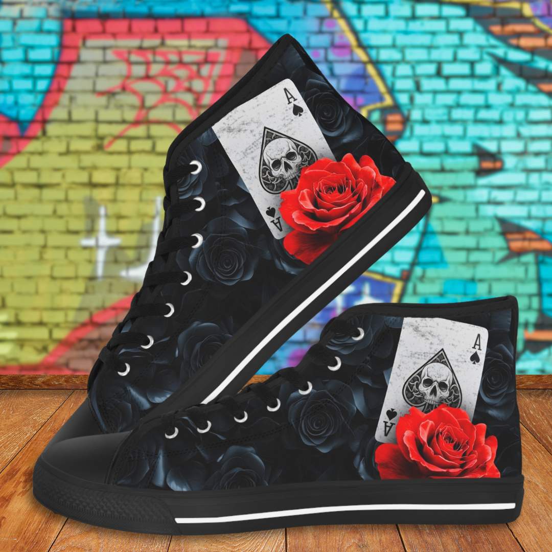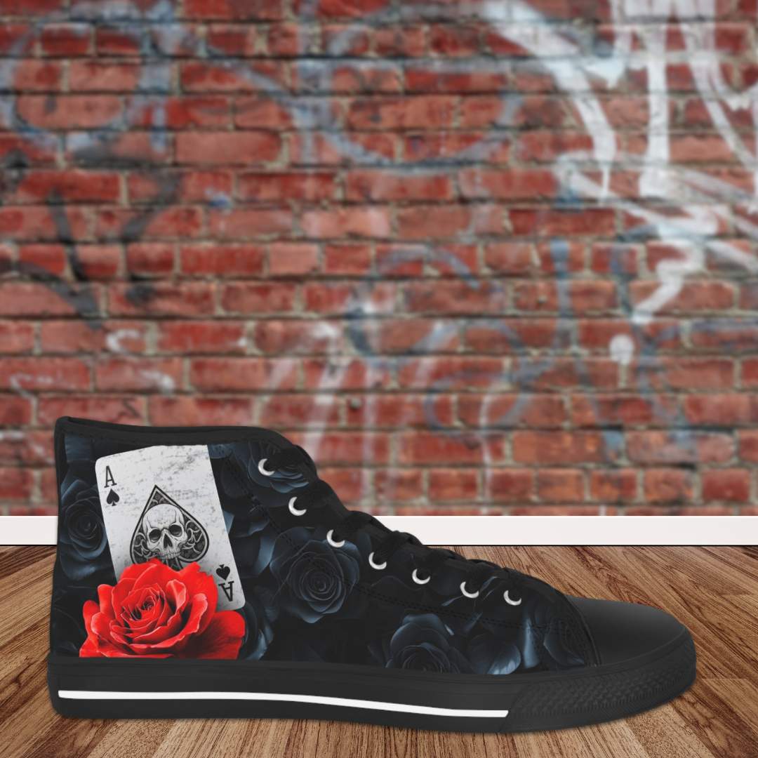 Made with breathable polyester canvas and featuring hi-poly deodorant memory foam insoles, these high top sneakers for men bear all the marks of an awesome shoe. Choose between black or white sole and laces, and enjoy the silver metal eyelets along with the lace-up closure. Add your designs and bring a bespoke staple to life.