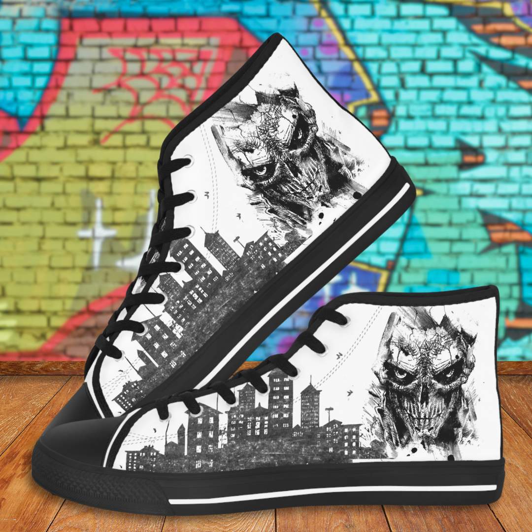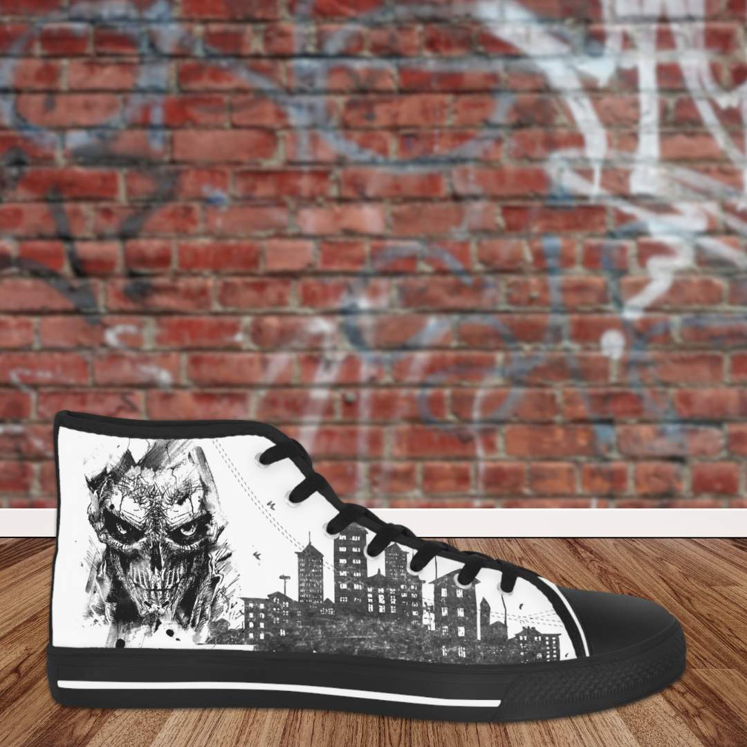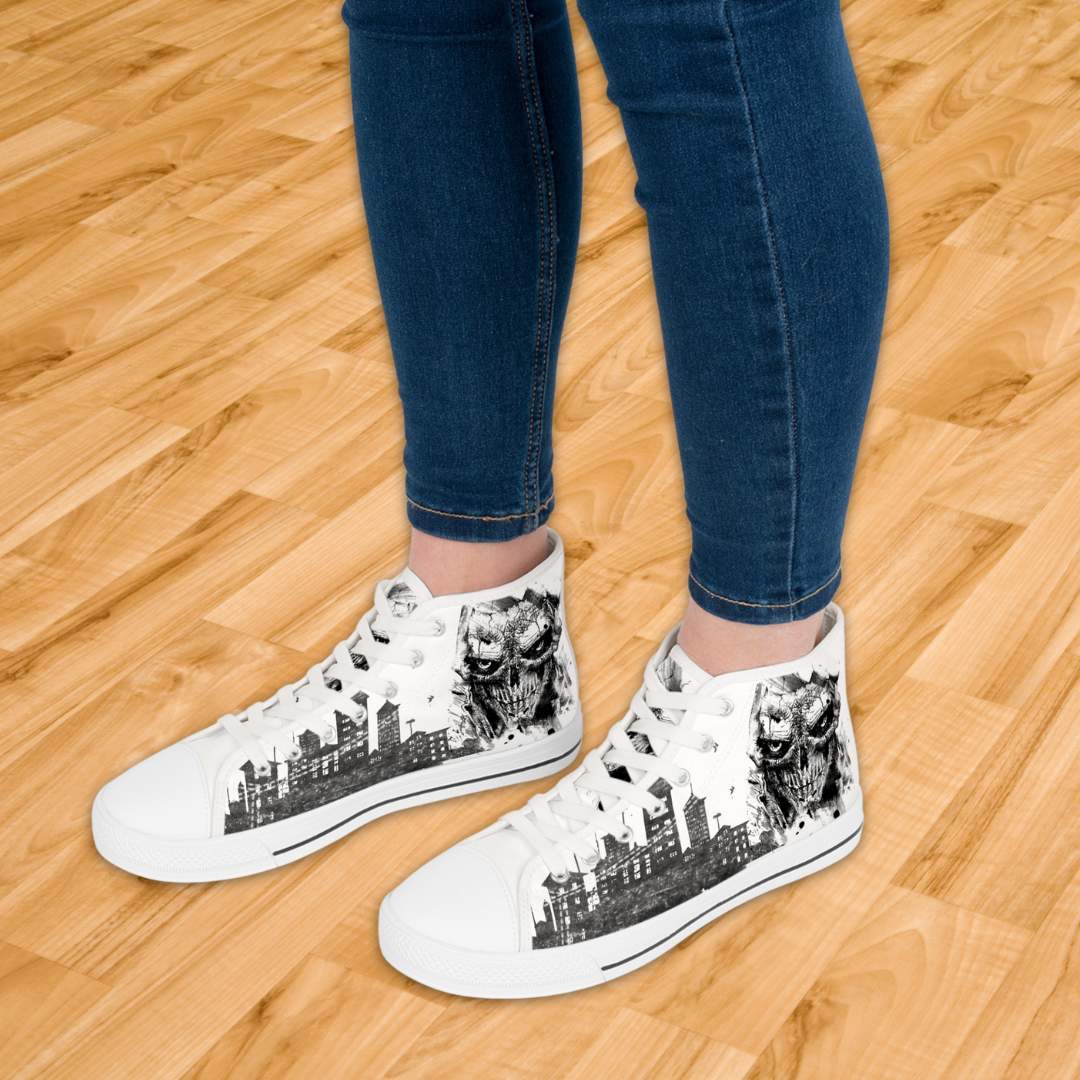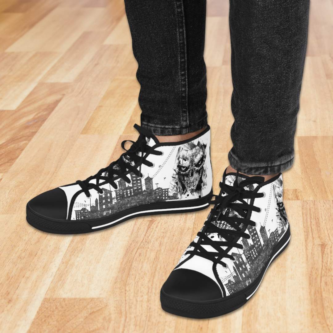 Made with breathable polyester canvas and featuring hi-poly deodorant memory foam insoles, these high top sneakers for men bear all the marks of an awesome shoe. Choose between black or white sole and laces, and enjoy the silver metal eyelets along with the lace-up closure. Add your designs and bring a bespoke staple to life.