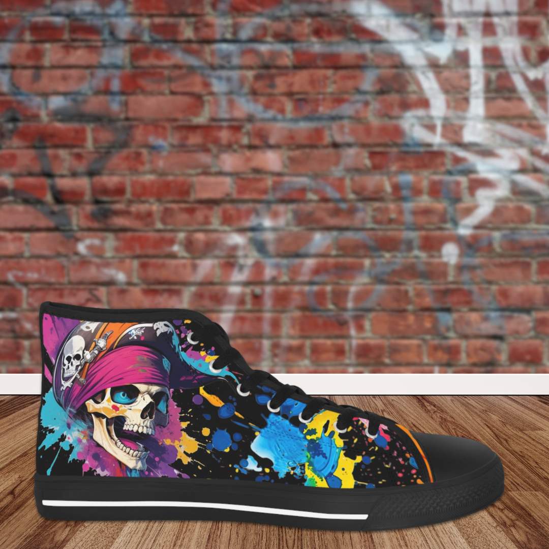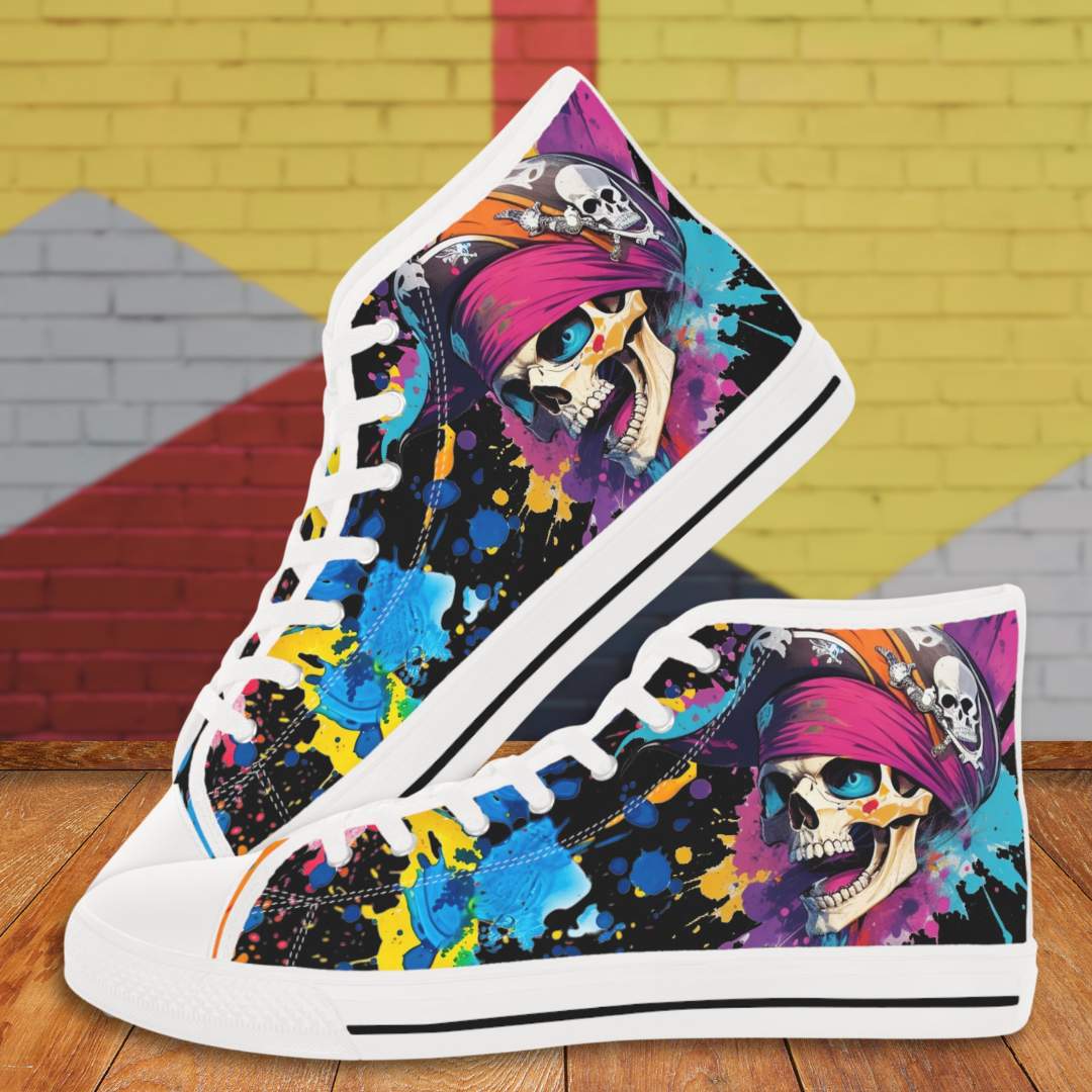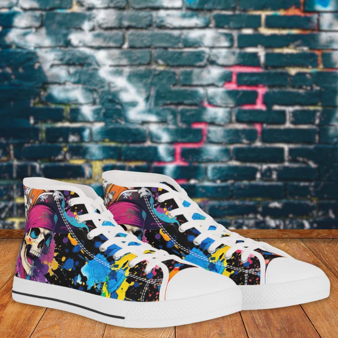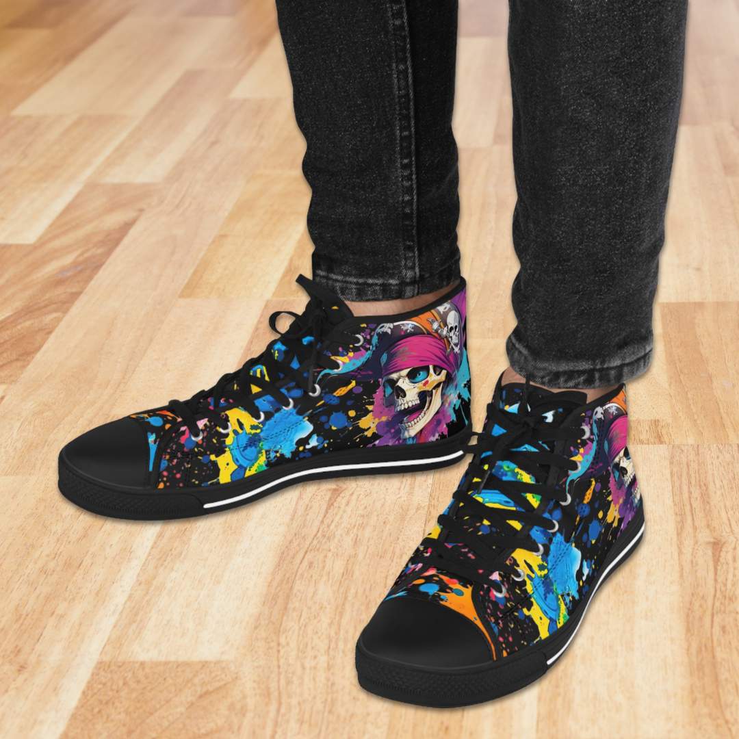 Made with breathable polyester canvas and featuring hi-poly deodorant memory foam insoles, these high top sneakers for men bear all the marks of an awesome shoe. Choose between black or white sole and laces, and enjoy the silver metal eyelets along with the lace-up closure. Add your designs and bring a bespoke staple to life.