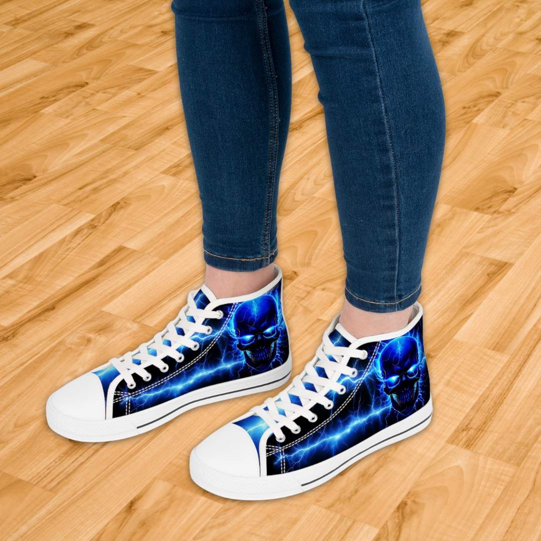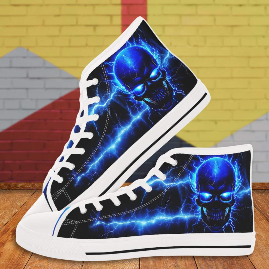 Made with breathable polyester canvas and featuring hi-poly deodorant memory foam insoles, these high top sneakers for men bear all the marks of an awesome shoe. Choose between black or white sole and laces, and enjoy the silver metal eyelets along with the lace-up closure. Add your designs and bring a bespoke staple to life.